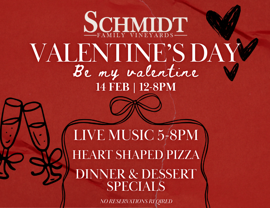 Schmidt Family Vineyards is a destination vineyard, winery and tasting room that offers wine flights, glasses, bottles, barrel tastings, winery tours, a full food menu and beautiful grounds. Spend your afternoon with friends and family, delicious wine and great atmosphere. Tuesday - Saturday 12-5pm with live Music every Friday 5-8pm